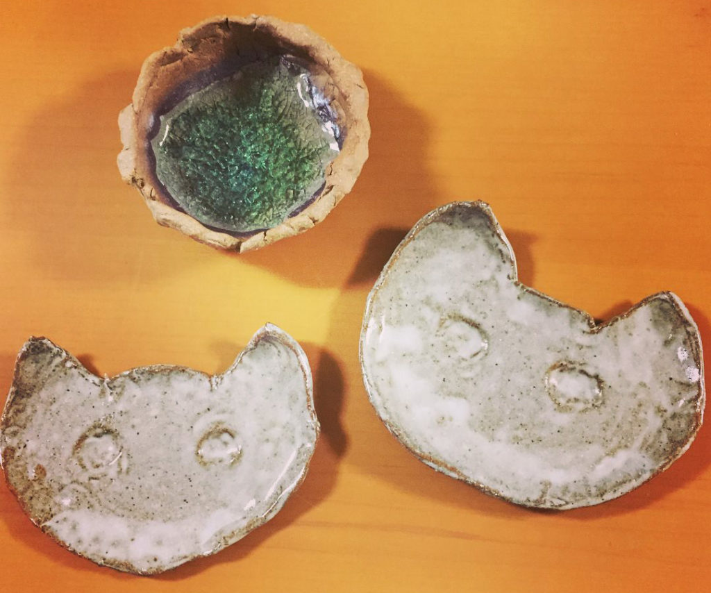 むすめの学童で陶芸教室がありました。参加費なんと¥500。 ねんどを手でこねて、むすめは小鉢を。私は平たくのばしてヘラで切って、ねこ型のお皿をつくりました。 完成... -