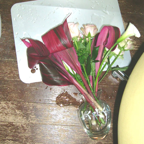 友人からお誕生祝いにとっても美しいお花をいただいた。 花瓶に生けたけれど。飾っても飾っても、繰り返し猫が倒す。(蹴り倒したか、花を喰らおうとして引っ張ったか)... -