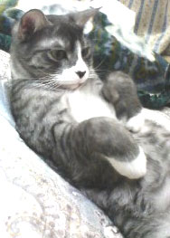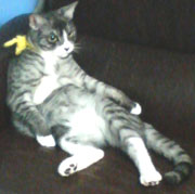 こちらはアトムくんです。文太にもそっくり・・・ 鯖のような色ですなぁ。サバトラ。 -