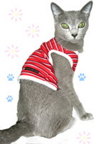 足が長いのでお洋服がよく似合います。「*blanka dog chest」さんで買いました。チワワ用のお洋服ですが、猫ちゃんが着てもOKだそうです☆ -